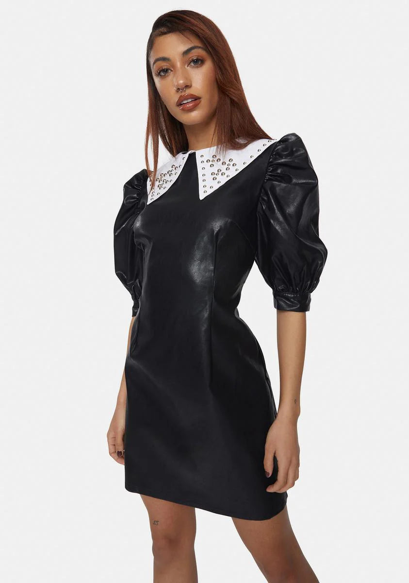 Vegan Leather Studded Collar Mini Dress