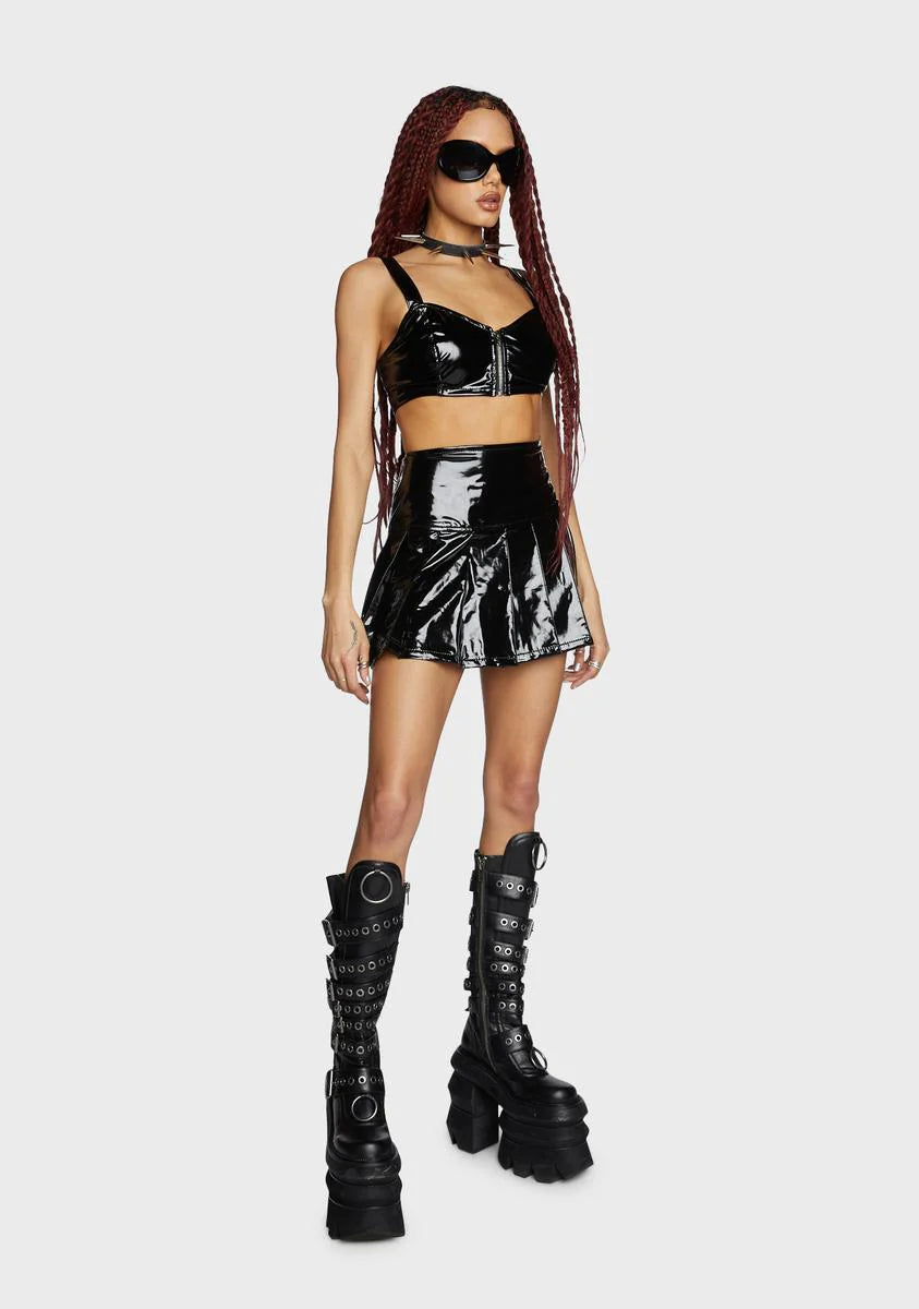 Vinyl Pleated Mini Skirt