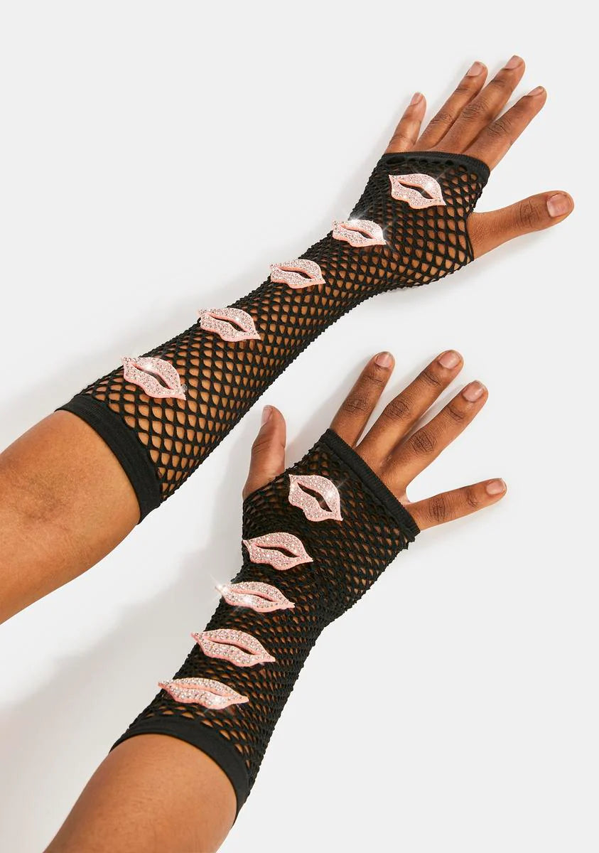 Want Your Kiss Fishnet Gloves