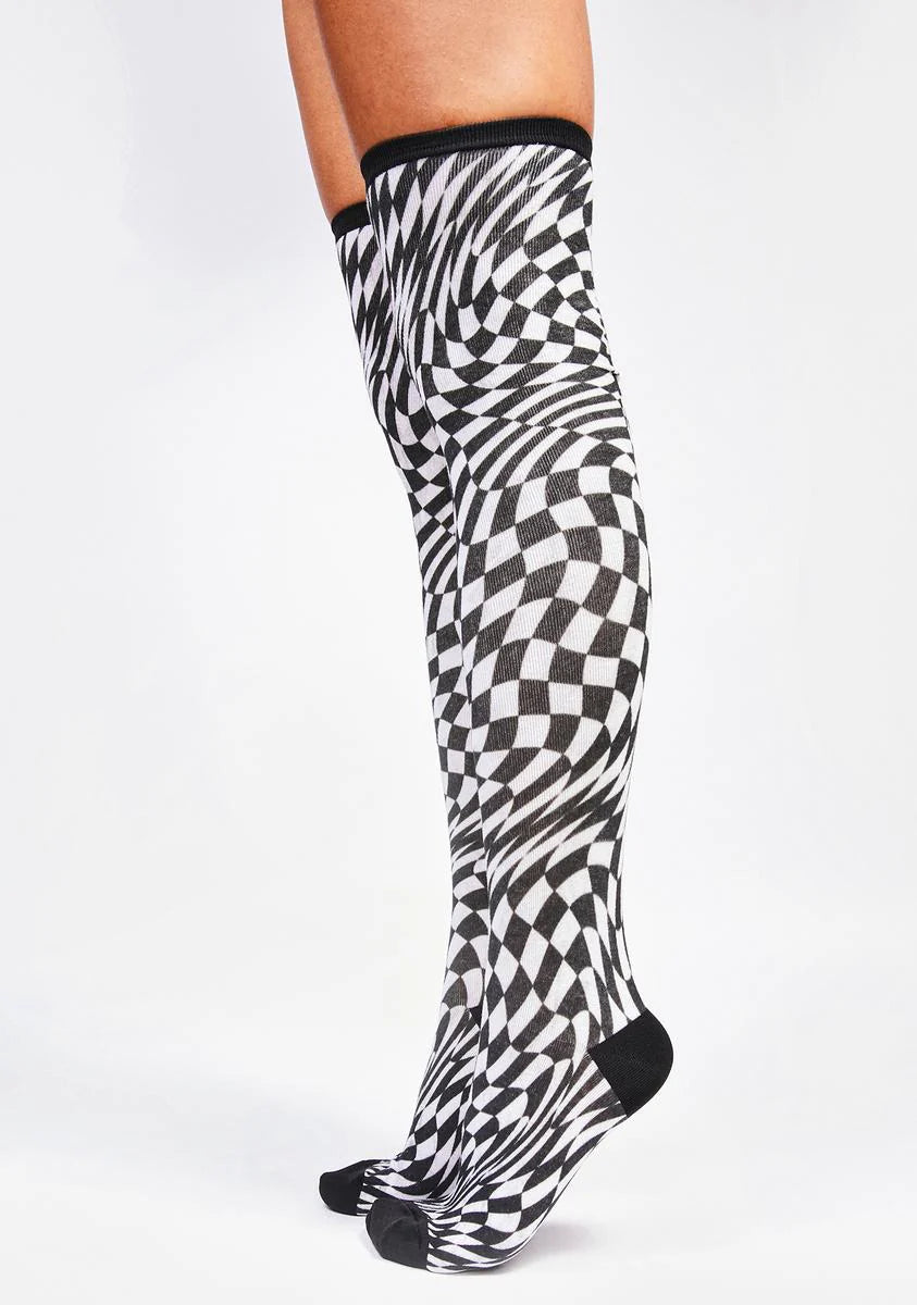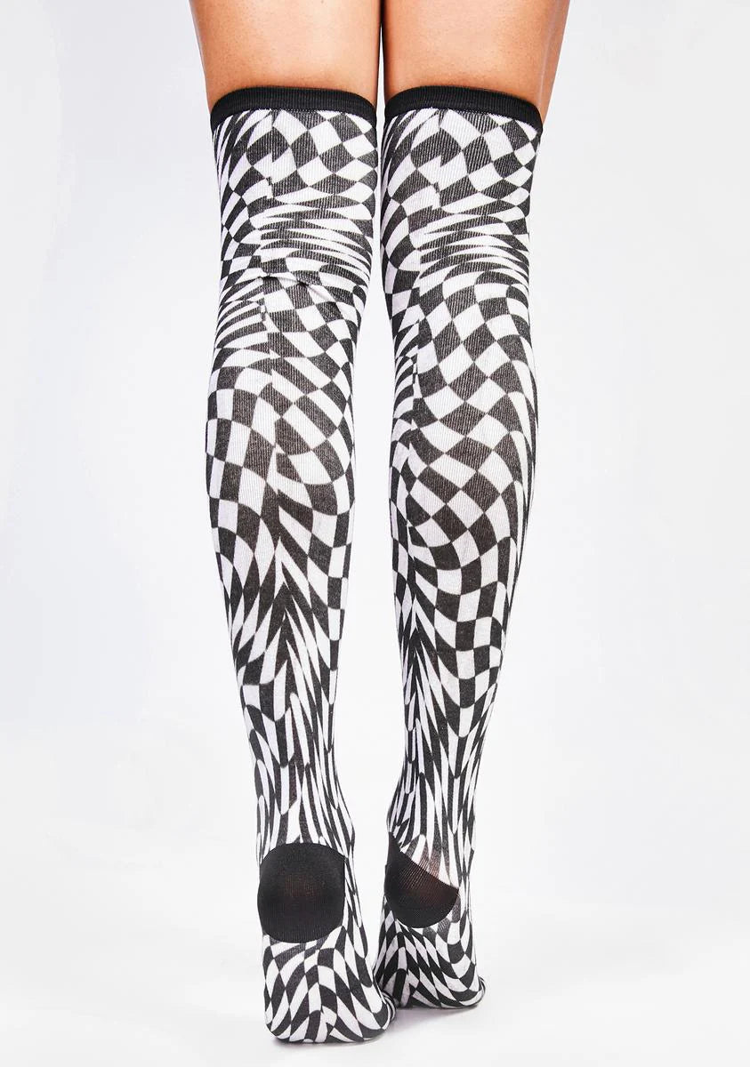Warp Speed Checkered Thigh Highs