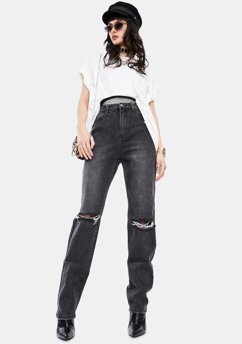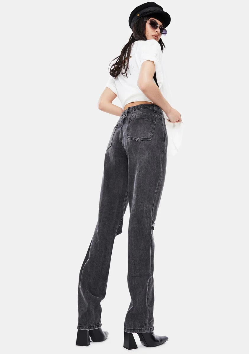 Washed Black Double Ripped Jeans