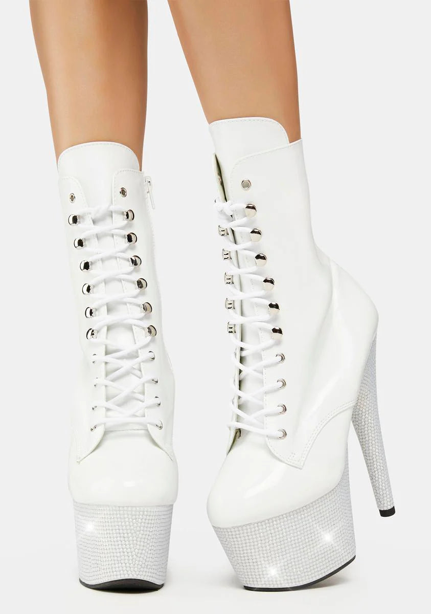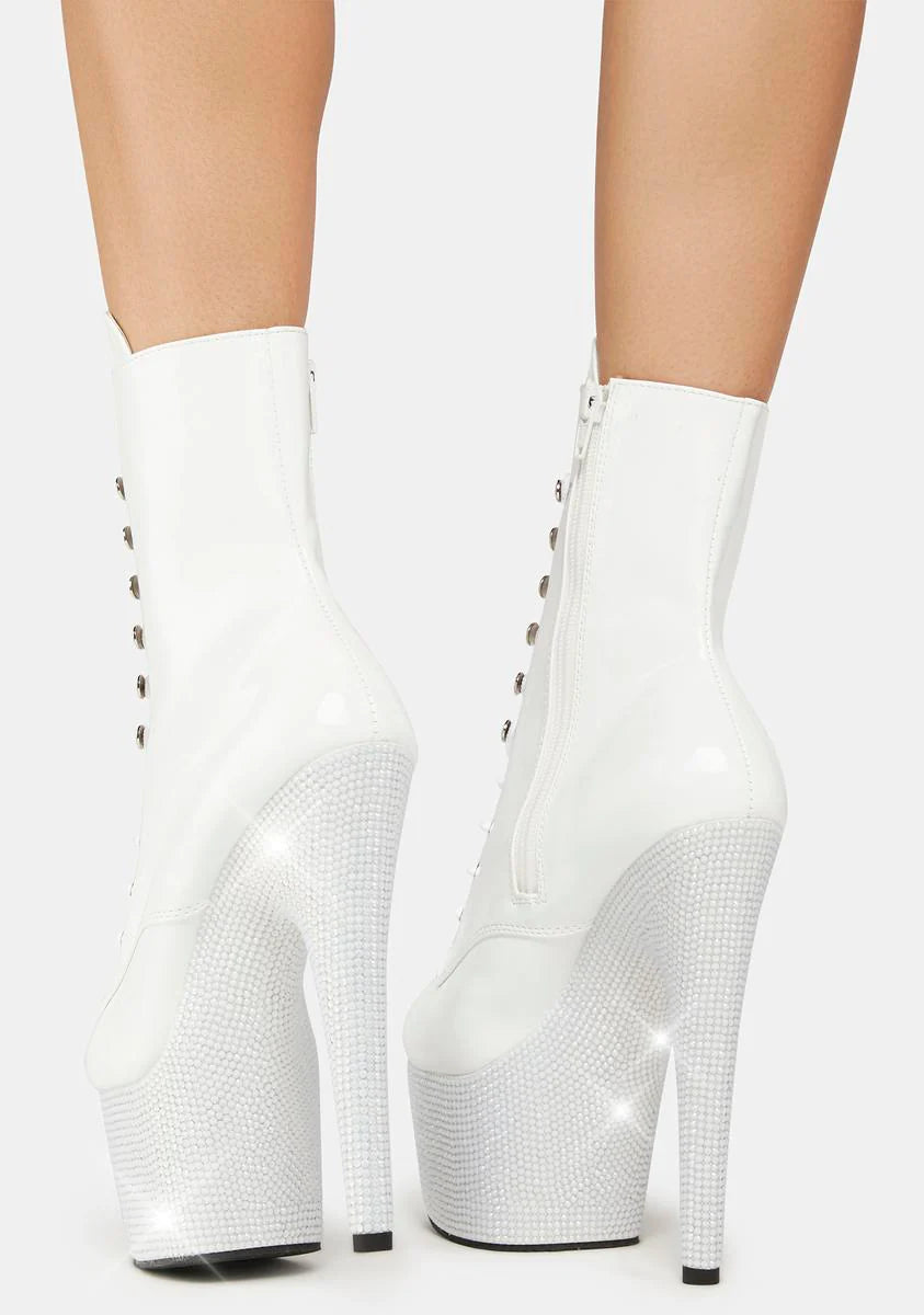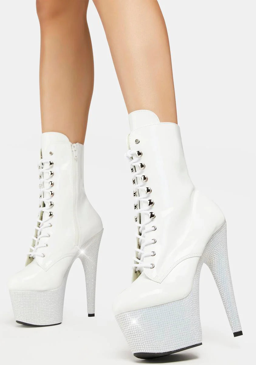 White Bejeweled-1020-7 Platform Heels