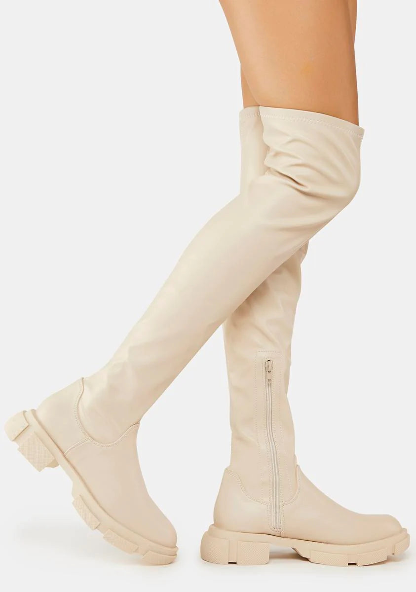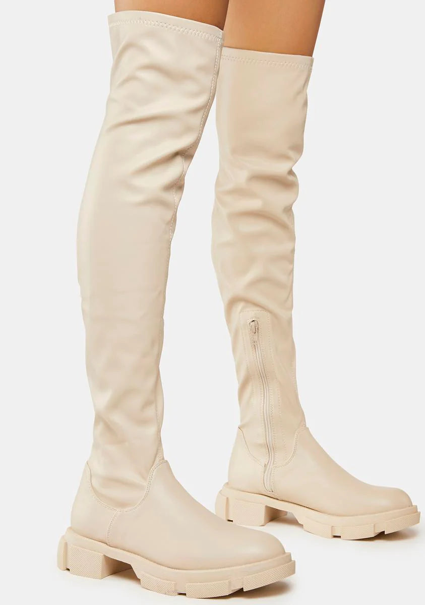 White Junya Knee High Boots