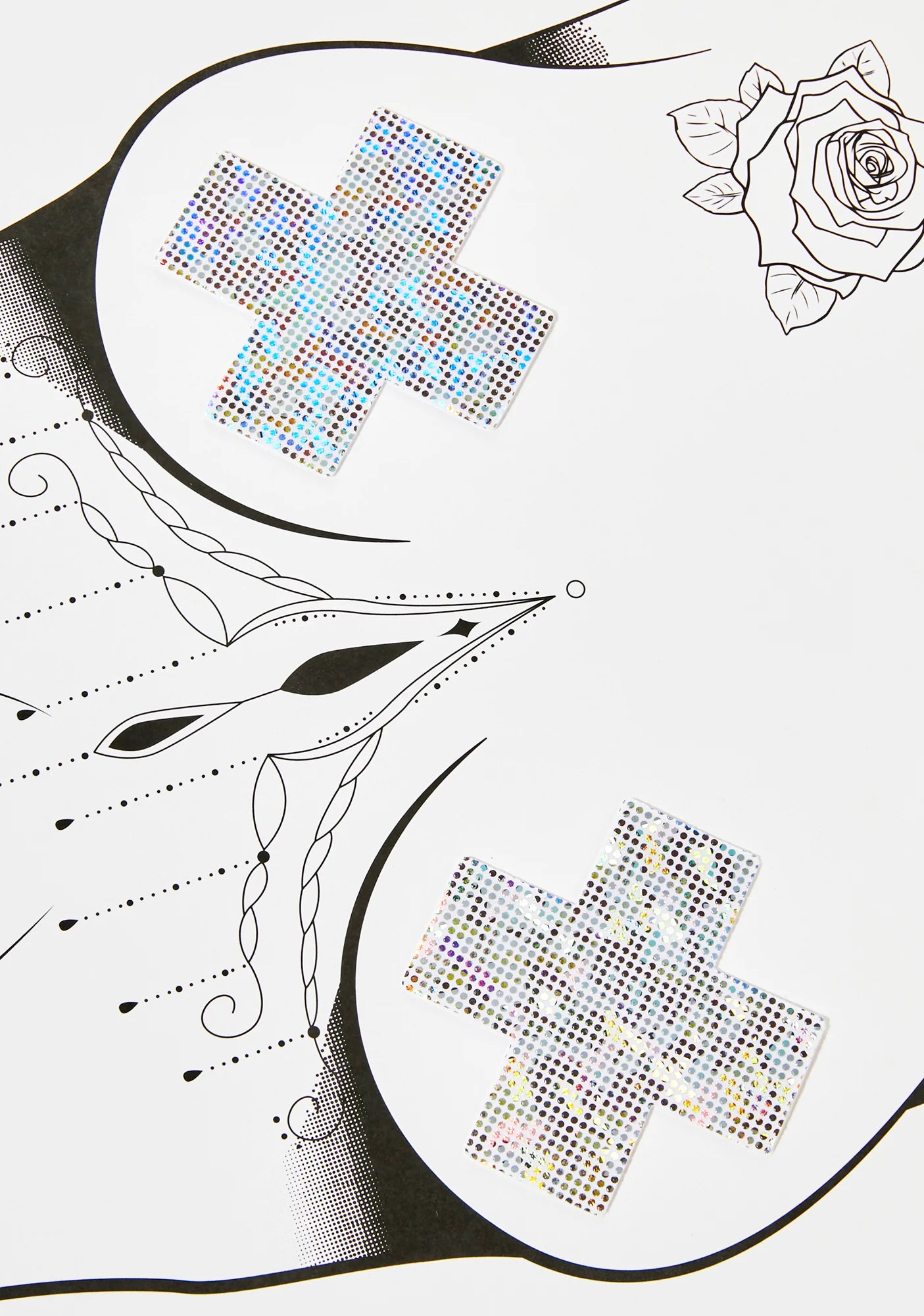 White Shattered Glass Disco Ball Glitter Cross Pasties