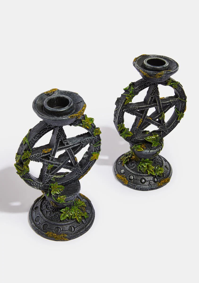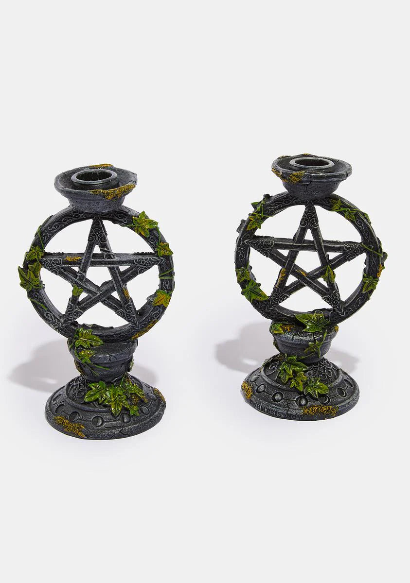 Wiccan Pentagram Candlesticks Set