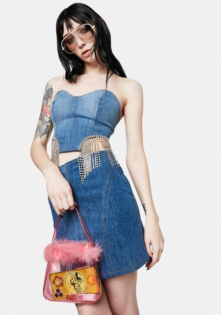 Without You Denim Fringe Bustier
