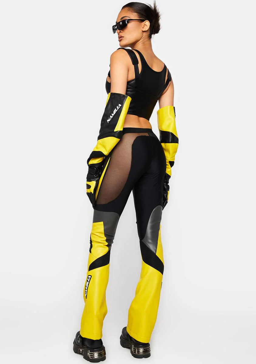 Yellow Moto Mesh Pants
